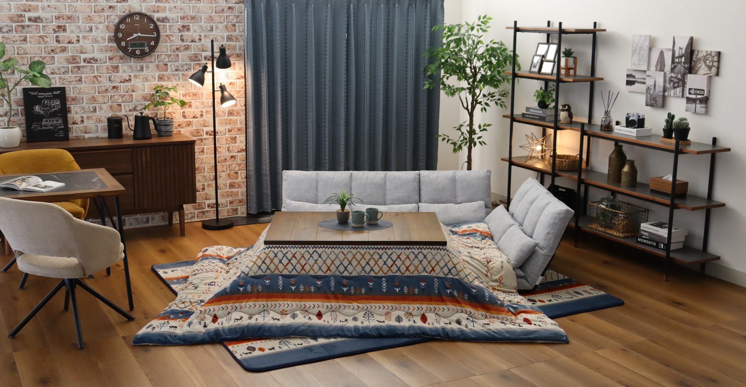【寒い季節に、やさしい温度と遊び心のある北欧風ナチュラルスタイルなコタツセット】