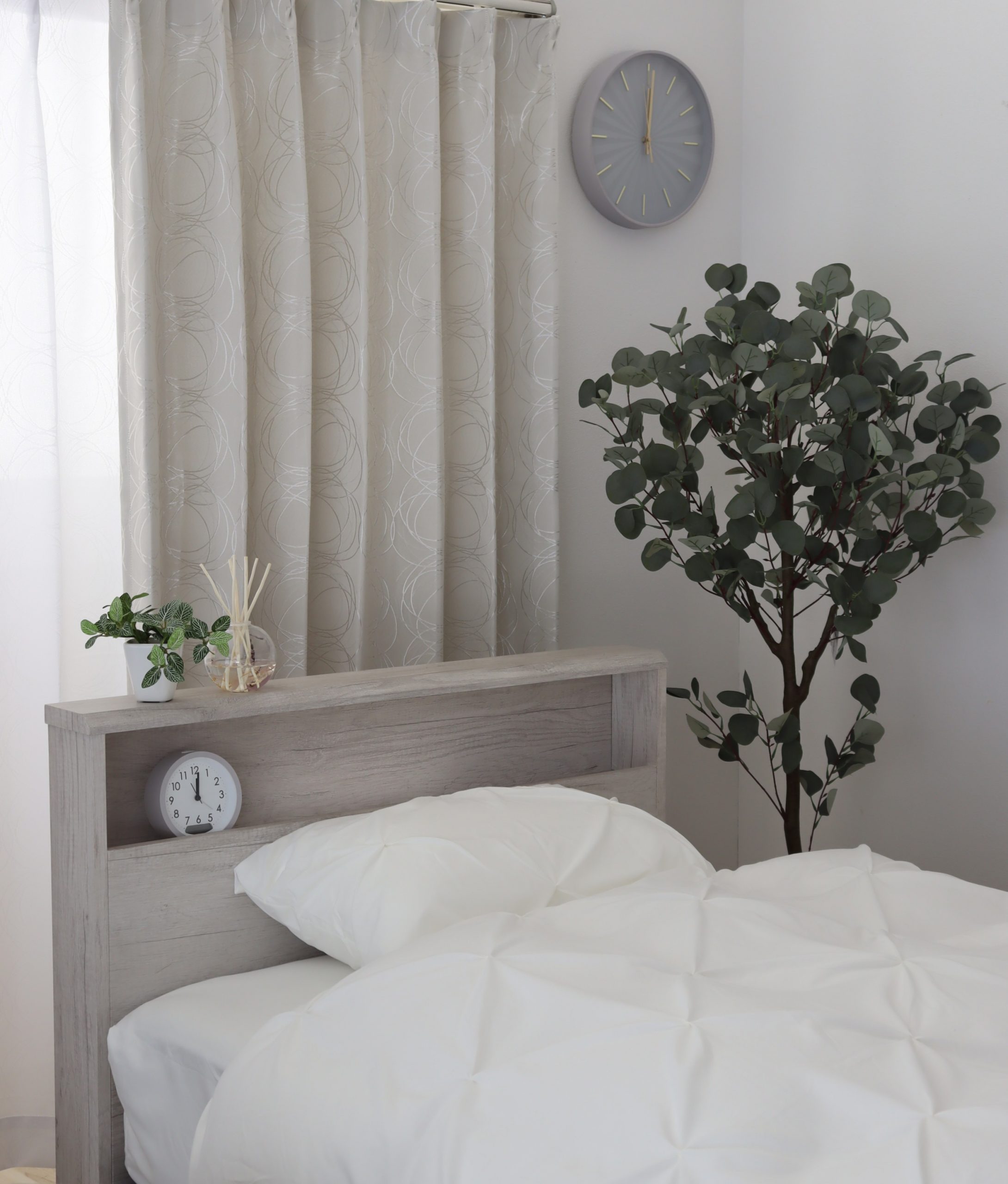 自然光が差し込む窓辺にはホワイト系のカーテンをあわせて、静かで心地よい空間に。