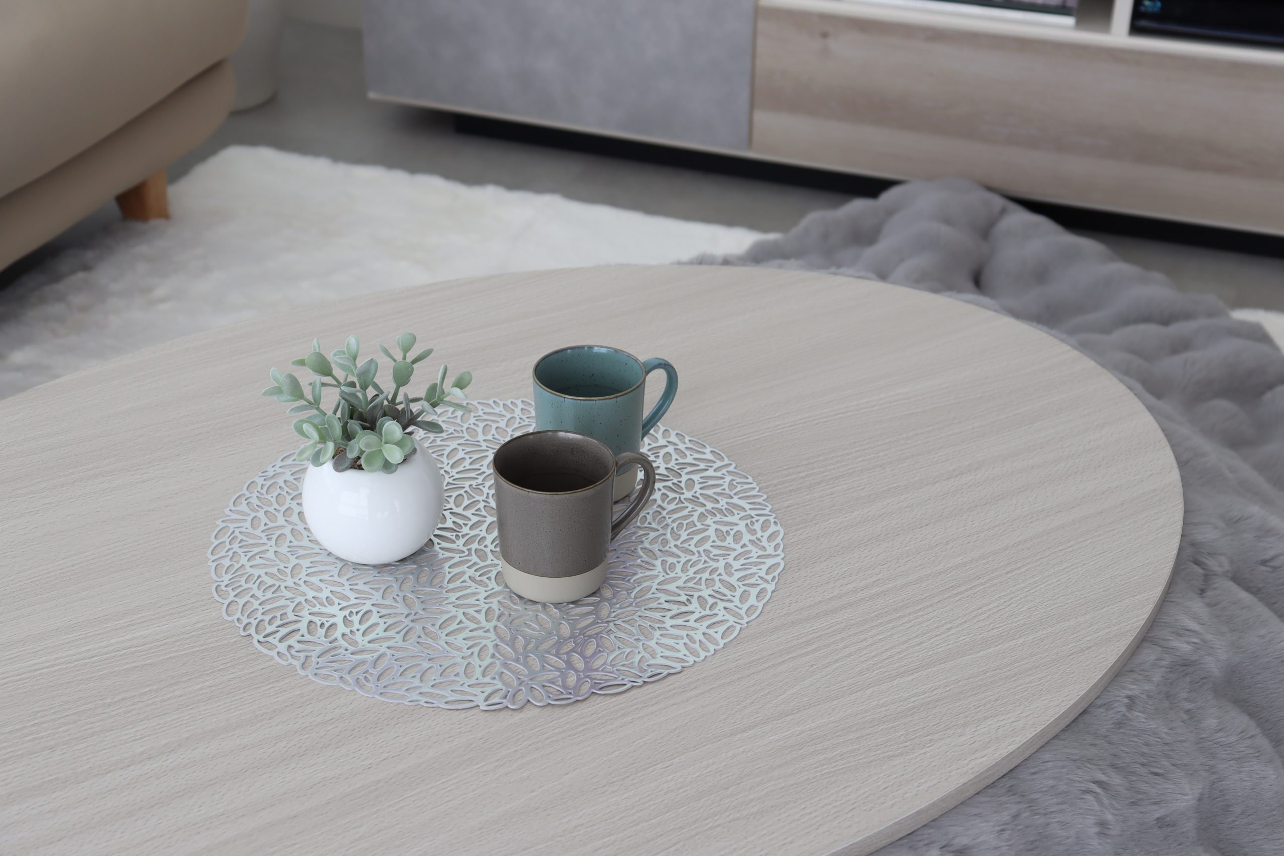楕円の木目調こたつテーブルは、ナチュラルな色味で空間にやさしく馴染みます。