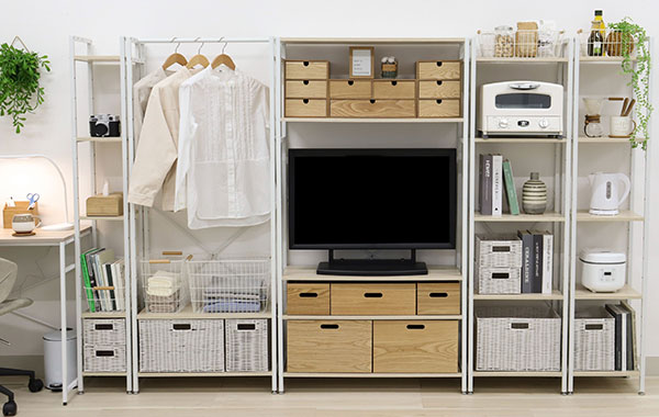 ナチュラルな収納ボックスを自由に組み合わせて。
