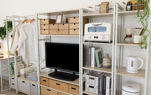 見せる収納と隠す収納で、空間をおしゃれに演出。
