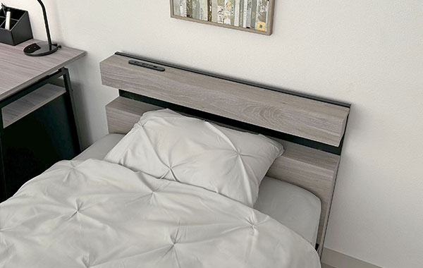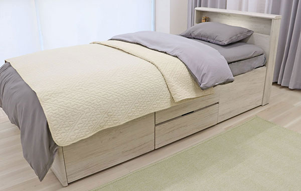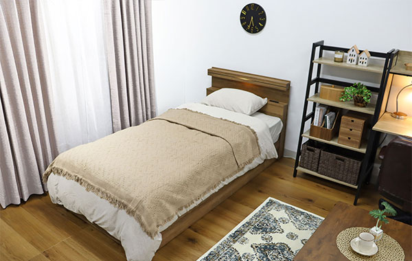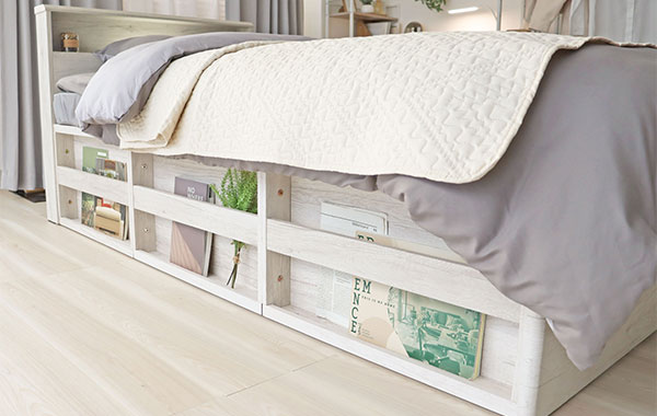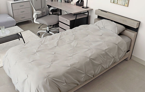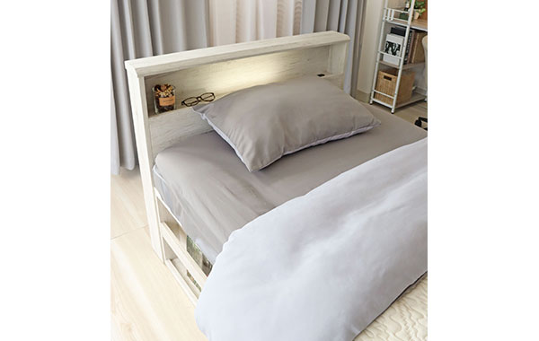 お部屋になじみやすいニュアンスカラーのベッドフレーム。