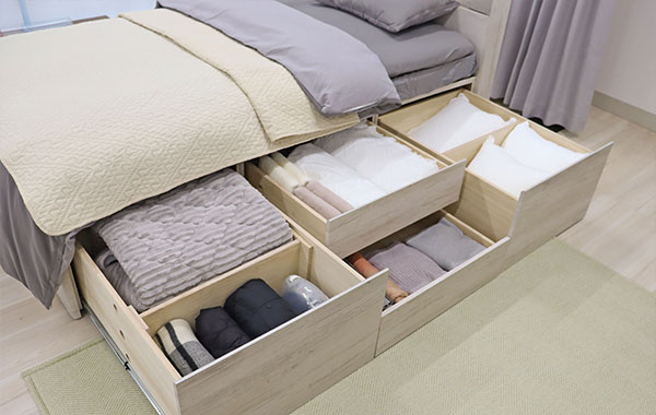 たっぷり収納できる深型と浅型の引き出し4杯付き。