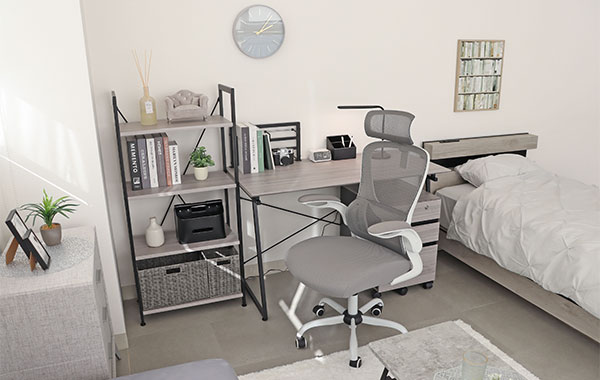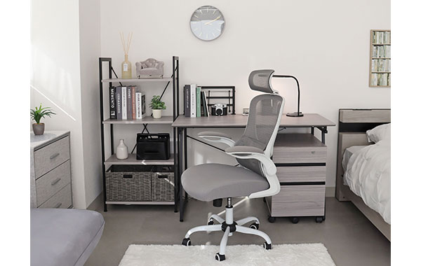 機能的なチェアもコーディネートに馴染みやすいグレーをチョイス。