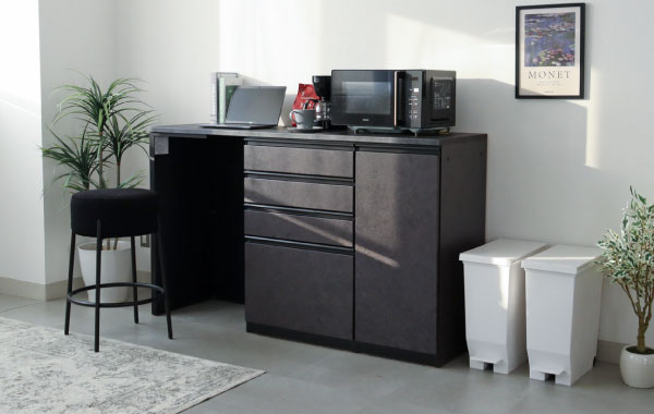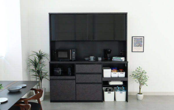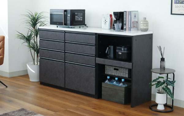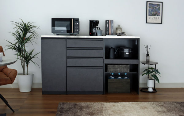 オープン部分には吸湿素材の「モイス」を使用。蒸気の出る家電を使っても家具本体を痛めません。