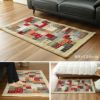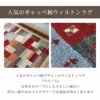 人気のギャッベ柄デザインのウィルトンマット「ウラノス」。ウールのような柔らかさ、へたりにくさを与え、遊び毛を出にくくさせる「ヒートセット加工」。