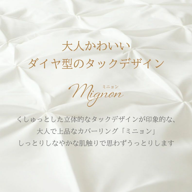 大人で上品な寝具カバーリングシリーズ「ミニョン」。しっとりしなやかな肌触りで思わずうっとりとします。
