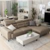 背もたれを倒すことで大型ソファにもかかわらず圧迫感を減らしてすっきり。