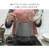 口が小さく、深さのある設計で油はねを防ぐことができ安心。