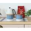 ブルーxホワイトの磁器製キャニスターに天然木の蓋がかわいいフレンチカントリー調のキッチンキャニスター