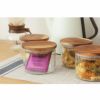 透明度の高いクリアガラスに深みのある色合いのアカシア木蓋でキッチンを可愛く演出してくれます。