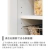 上下の扉内にある棚板は3cm間隔で高さを調節できる移動棚。