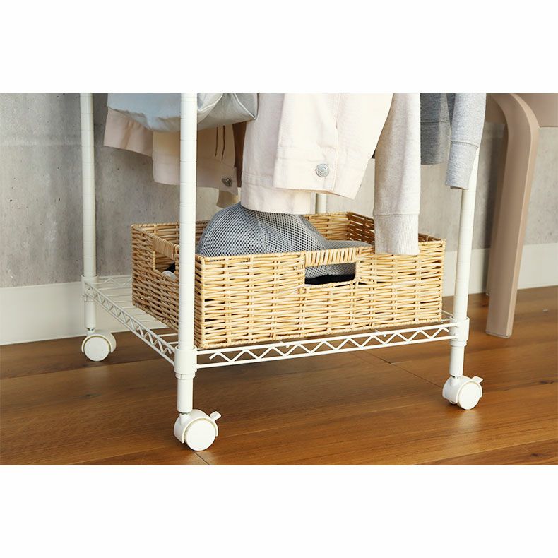 つや消しのやわらかいオフホワイトのスチールハンガーラック「メルト」。キャスター付きで移動や掃除もラクラク。
