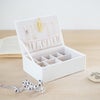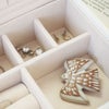 淡いペールカラーとベルベット調の手触りが上品なジュエリーボックスです。
