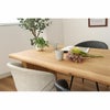 天然無垢材の一枚板風天板が目を引くモダンダイニング。素材と脚や天板の形状を選べます。