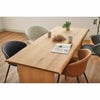天然無垢材の一枚板風天板が目を引くモダンダイニング。素材と脚や天板の形状を選べます。