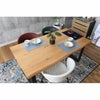 天板には無垢材の反りを防ぐ、スチール製の反り留め付き。
