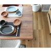 天然無垢材の一枚板風天板が目を引くモダンダイニング。素材と脚や天板の形状を選べます。