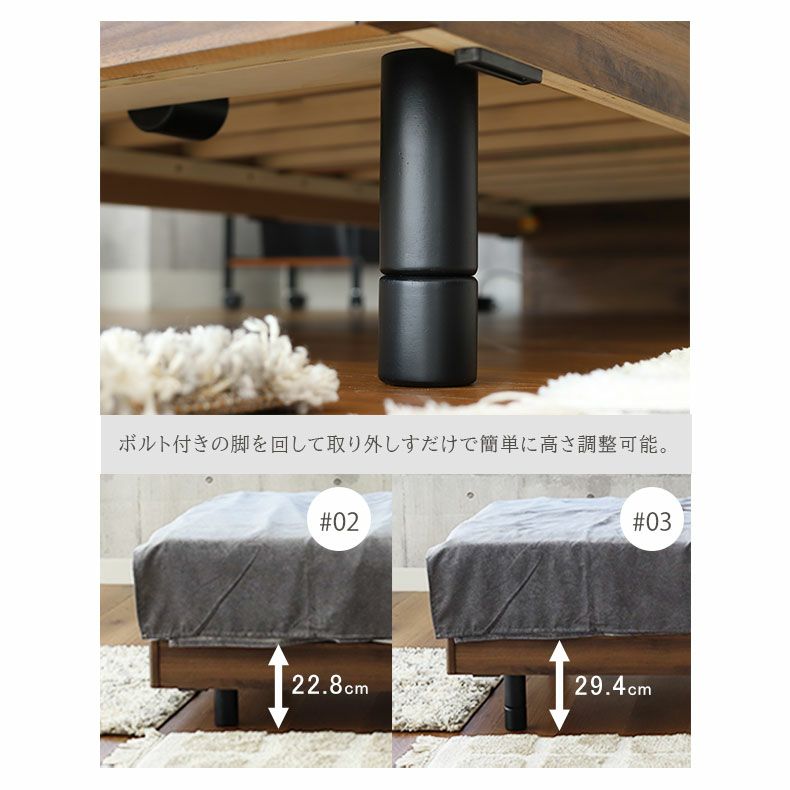 古材を使用したような雰囲気のヴィンテージデザインのベッド「リコルド」。用途に合わせて4段階高さ調節。