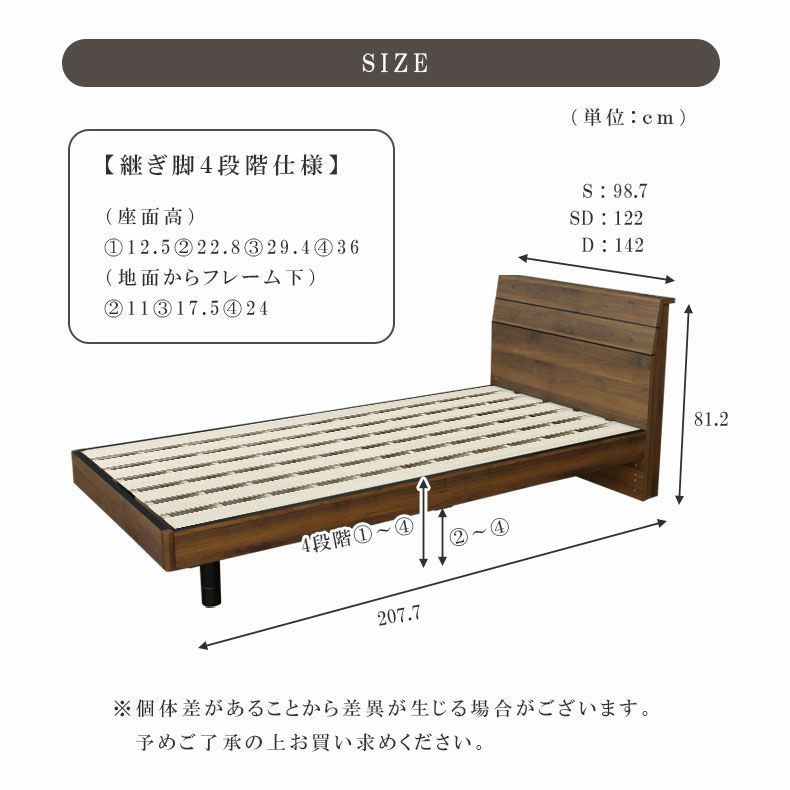 | サイズ | シングル:幅98.7×奥行207.7×高さ81.2(cm) セミダブル:幅122×奥行207.7×高さ81.2(cm) ダブル:幅142×奥行207.7×高さ81.2(cm) |