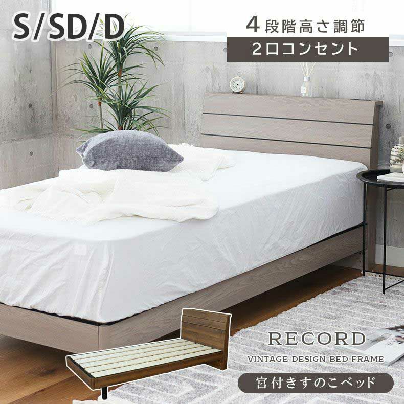 #ベッド#ベット#ベッドフレーム#ベットフレーム#bed#フレーム#寝台#GY#グレー#グレイ#灰色#BR#ブラウン#茶色#オリジナル#コンセント有り#宮付き#高さ調節可能#すのこ床板#コイルマットレス対応