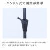 パラソルの開閉は支柱中央にあるハンドルをくるくると回すだけ。