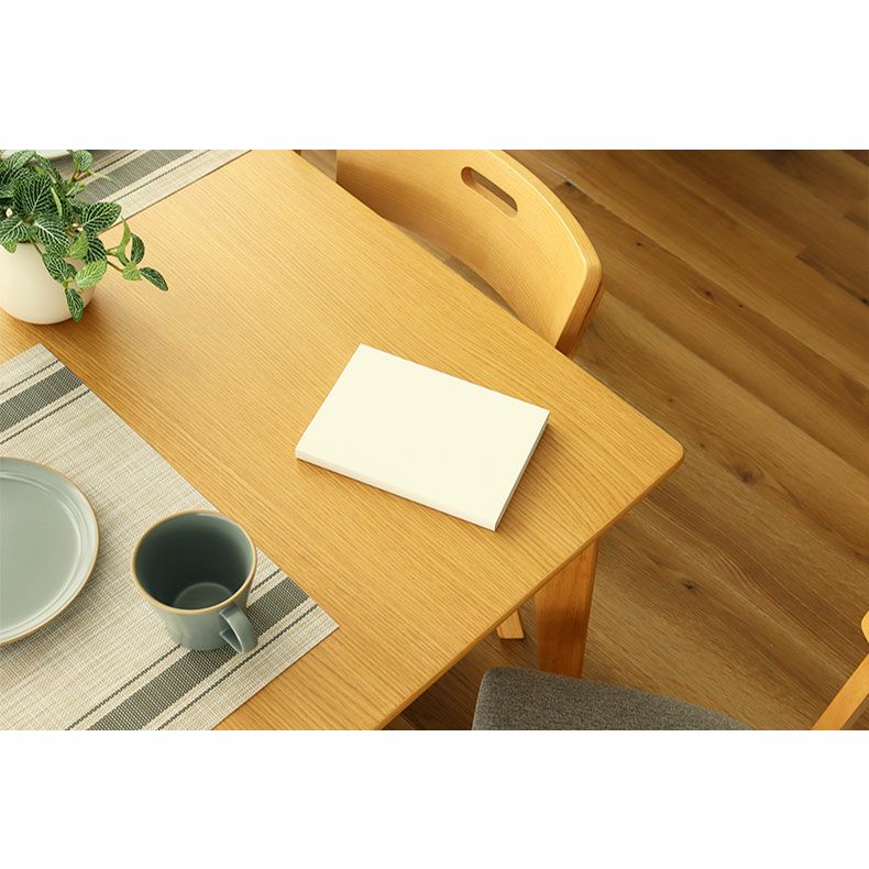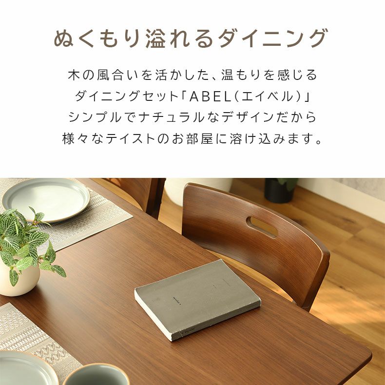 木の風合いを活かした、温もりを感じるダイニングテーブル「エイベル」。天板は、水や汚れに強いウレタン塗装。