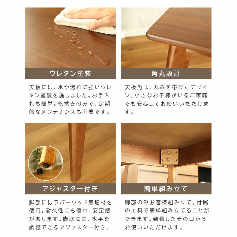 #テーブル#ダイニング#ダイニングテーブル#食卓#つくえ#机#食堂#食台#単品#WH#ホワイト#白#BE#ベージュ#生成り#BR#ブラウン#茶色#オリジナル#ウレタン塗装#木製・木目調#天然木突板天板#スクエア型#アジャスター有#木脚