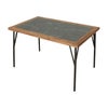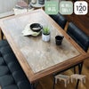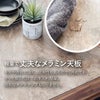 異素材ミックス天板が存在感抜群のヴィンテージ調ダイニング「メイ」。熱やキズ、汚れに強いメラミンは水濡れにも強く、汚れてもサッと乾拭きするだけ。