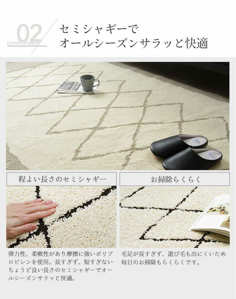 モダンテイストならコレ!シーズンを選ばず活躍できるセミシャギーラグは、当社オリジナルデザインで柄かぶりもありません。