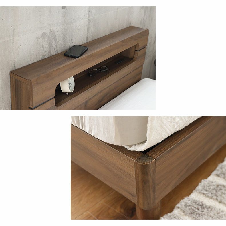 PVC樹脂に木目調プリントの耐久性にすぐれたベッド「ウィロー2」。自分に合った高さに調整可能。LED、1口コンセント付き。