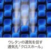 上下に貫通した通気孔「クロスホール」※と、中間層の高通気新素材「レフレフォーム」が、