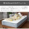 サイズ | シングル:幅97×奥行195×高さ25(cm) セミダブル:幅120×奥行195×高さ25(cm) ダブル:幅140×奥行195×高さ25(cm) ワイドダブル:幅152×奥行195×高さ25(cm) クイーン(SSx2枚):幅160×奥行195×高さ25(cm) クイーン(1枚):幅160×奥行195×高さ25(cm) |