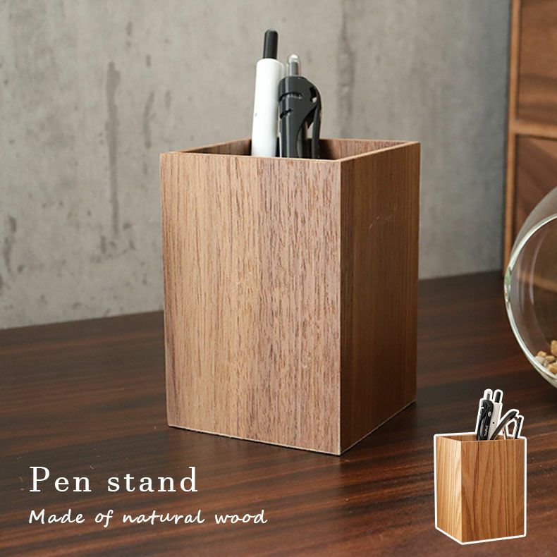 温もりのある天然木の風合いと手触りが心和む突板ペンスタンド。