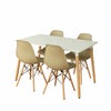 シンプルで洗練されたホワイトの美しいダイニングテーブルセット「アンリ」。チェアは人気のイームズチェアの復刻デザイン。