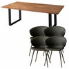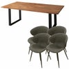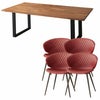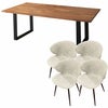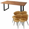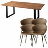 上質な天然無垢材をふんだんに使用した贅沢なウッドダイニング「ノーブル」。水濡れに強く汚れがつきにくいPU(ウレタン)塗装仕上げ。ヴィンテージスタイルチェア「トーレ」との5点セット。