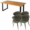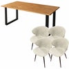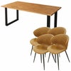上質な天然無垢材をふんだんに使用した贅沢なウッドダイニング「ノーブル」。水濡れに強く汚れがつきにくいPU(ウレタン)塗装仕上げ。ヴィンテージスタイルチェア「トーレ」との5点セット。