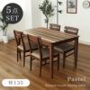 #ダイニングセット#ダイニングテーブルセット#食堂#5点セット#2人用#4人#4脚#ダイニング#センチ#BR#ブラウン#茶色#オリジナル#アーム無#ウレタン塗装#木製・木目調#天然木突板天板#スクエア型#アジャスター有#ファブリック座面#木脚