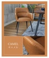 チェアはヴィンテージ感漂うフェイクレザーと細身のスチール脚の組み合わせ。