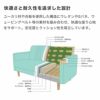 コンパクトながらひろびろくつろげるカジュアルソファー「ハル」。ファブリック生地のページになります。