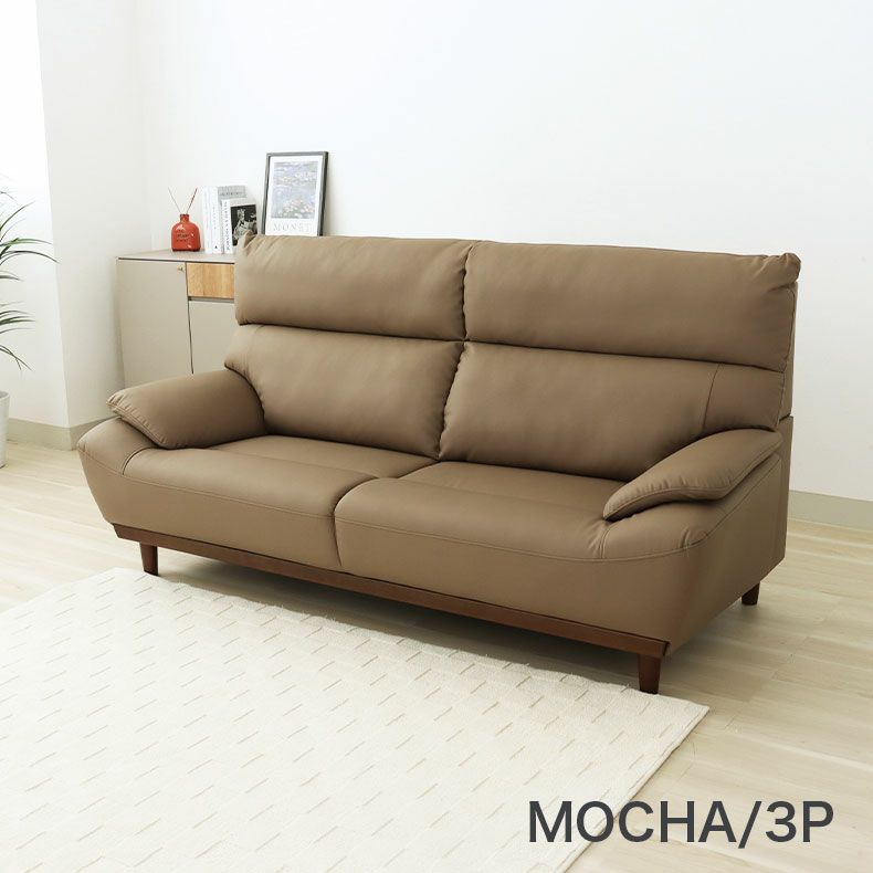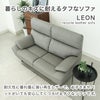 再生レザーを使用した高耐久な合皮ソファ「レオン」。足元の木製フレームがアクセントになり上品な雰囲気を醸し出します。