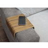 ソファのアーム部分にかぶせると、サイドテーブルのように使える木目のアームトレイ。マグカップやグラス、スマホやリモコンなど様々な小物をちょっと置くのに便利です。