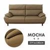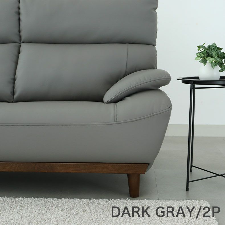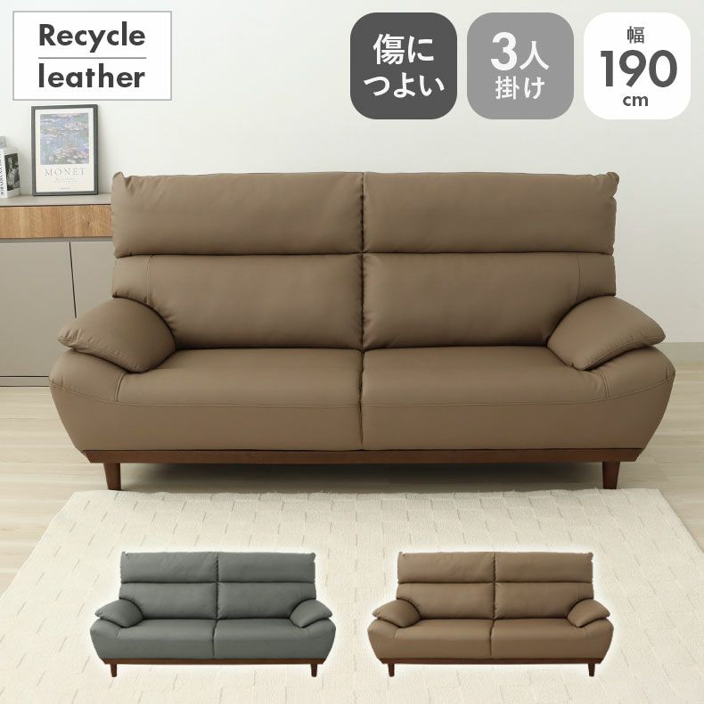 再生レザーを使用した高耐久な合皮ソファ「レオン」。足元の木製フレームがアクセントになり上品な雰囲気を醸し出します。