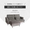 落ち着いたモダンデザインのソファ「ブレス」。座面から背もたれに適度な傾斜をかける事でリラックス出来る座り心地に。