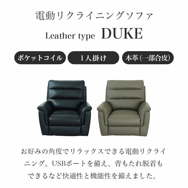 お好みの角度でリラックスできる電動リクライニングソファ「デューク」。