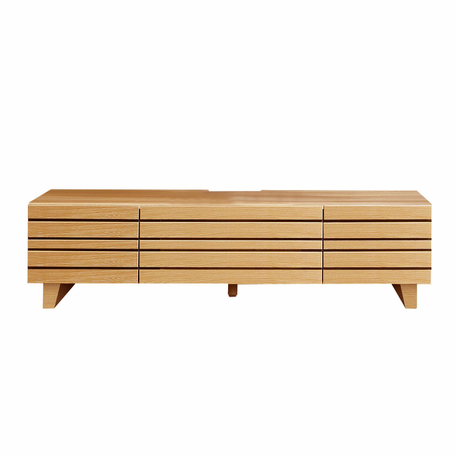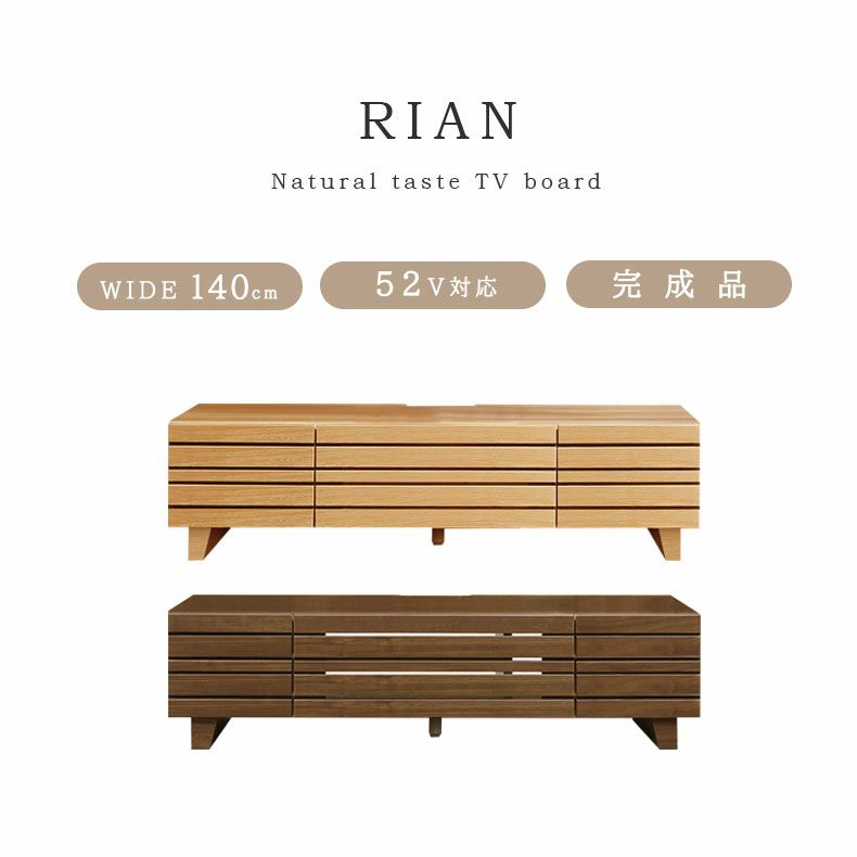 リアルな木目を再現したナチュラルテイストのテレビボード「リアン」。格子状の収納は閉じたままでも電波が届きます。