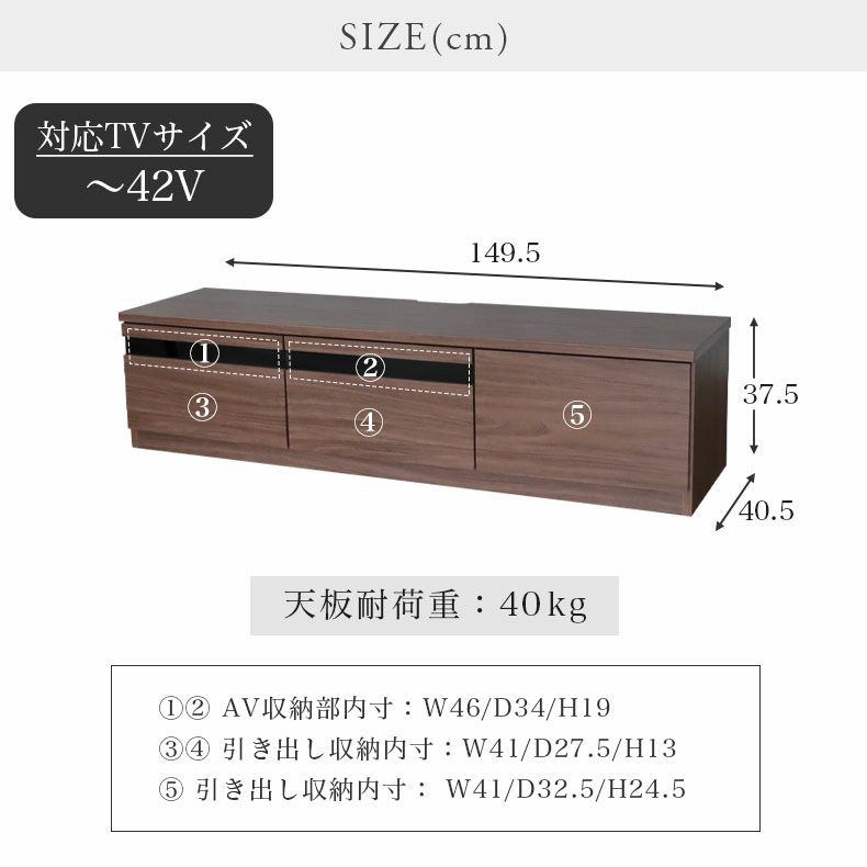 サイズ幅149.5×奥行40.5×高さ37.5(cm)