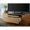 前板に無垢材を使用した美しく魅せるテレビボード「スロウ フロウ」。AV収納スペースはガラススリットで閉めたままでもリモコン操作可能。