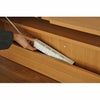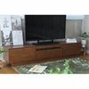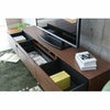 前板に無垢材を使用した美しく魅せるテレビボード「スロウ フロウ」。ガラススリットで引き出しを閉めたままでもリモコン操作可能。