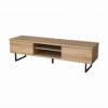 リアルな木目シート×スチール脚の組み合わせがおしゃれな国産テレビボード「タティス」。背面には配線孔付き。